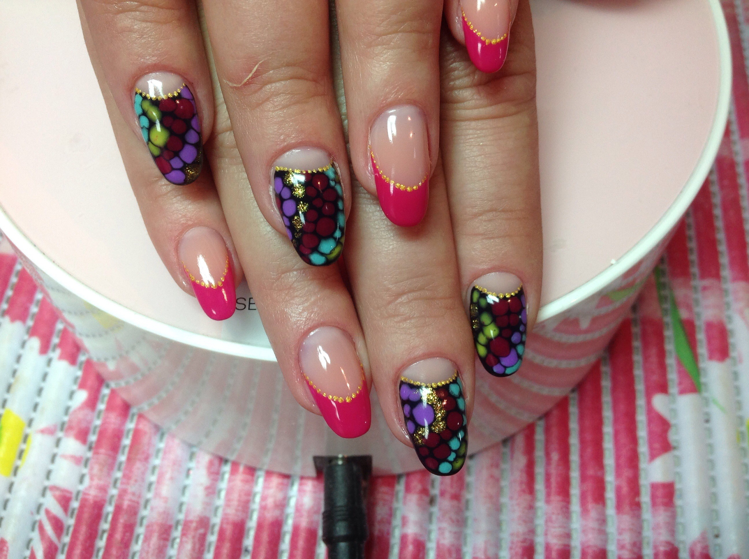 Мы работаем на качественных материалах.Исполняемых любой дизайн от Екатерины Мирошниченко, т.к. пройдены все курсы её школе. Аэрография на ногтях любой сложности. Акварельные дизайны, китайка, градиенты любой сложности.